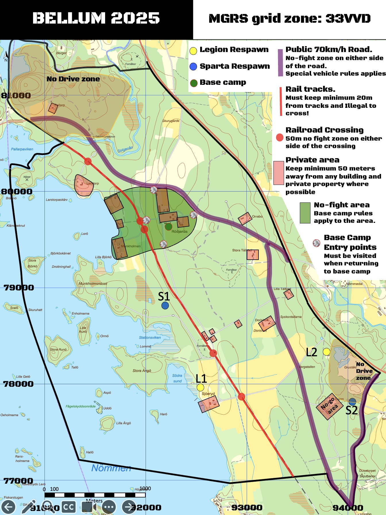 NOTE! Maps & rulebooks may update before the game. The game area is dynamic during Bellum 2025—respawns, dominations, missions and FOB placement may change during play.